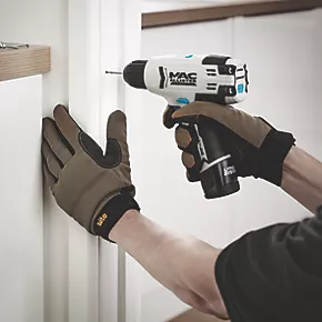 Durable gloves with a padded gripper palm and knuckle protection. Stretchable and breathable back.